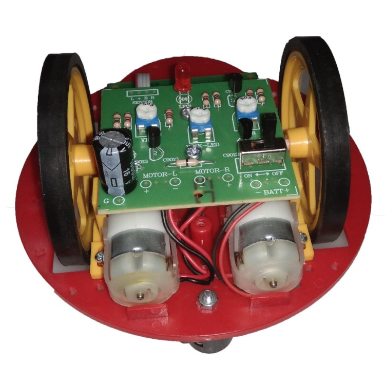 หุ่นยนต์เดินตามเส้นตัวนี้จะทำการตรวจจับสีของพื้นที่ ที่แตกต่างกัน ซึ่งอาศัยการส่งและรับแสง ด้วยหลักการนี้เอง หุ่นยนต์จึงสามารถวิ่งไปตามเส้นได้